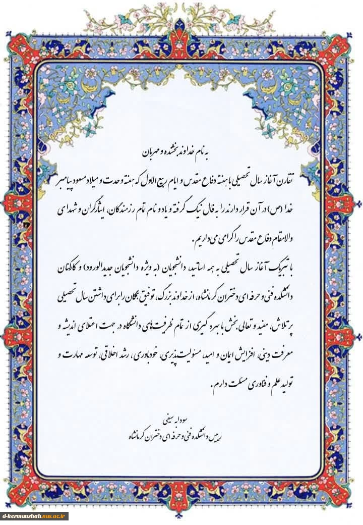 امتیاز دهید : تقارن آغاز سال تحصیلی با هفته دفاع مقدس و ایام ربیعالاول که هفته وحدت و میلاد مسعود پیامبر خدا (ص) 2 دوشنبه 3 مهر 1402 ساعت 7:27