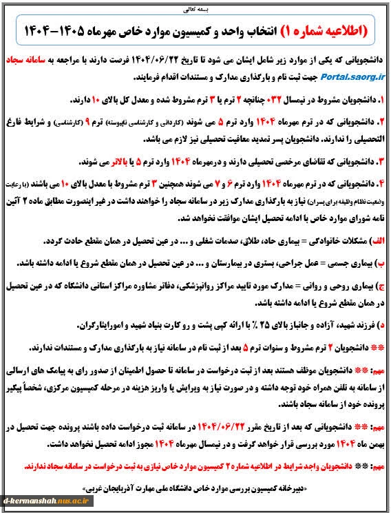 اطلاعیه کمیسیون موارد خاص (شماره یک و دو) دانشکده ملی مهارت دختران کرمانشاه 2